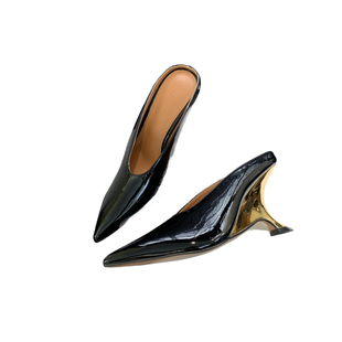 仙女風尖頭拖鞋 新款 半拖包頭漆皮高跟穆勒鞋 女亮皮涼拖2025夏季由