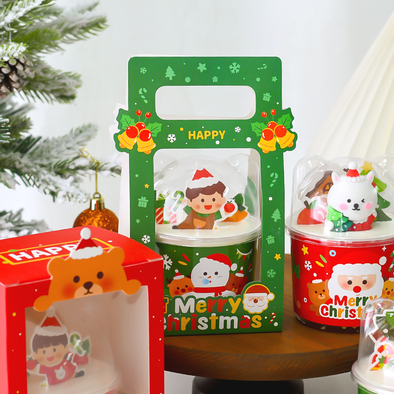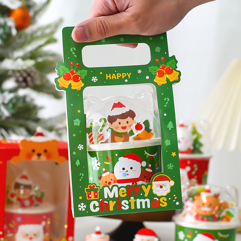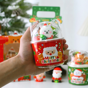 圣誕節透明小熊杯蛋糕裝 盒手拎袋 飾插件圣誕老人杯套情侶烘焙包裝由