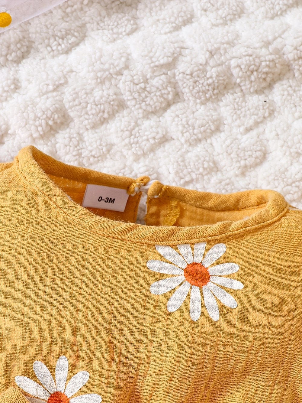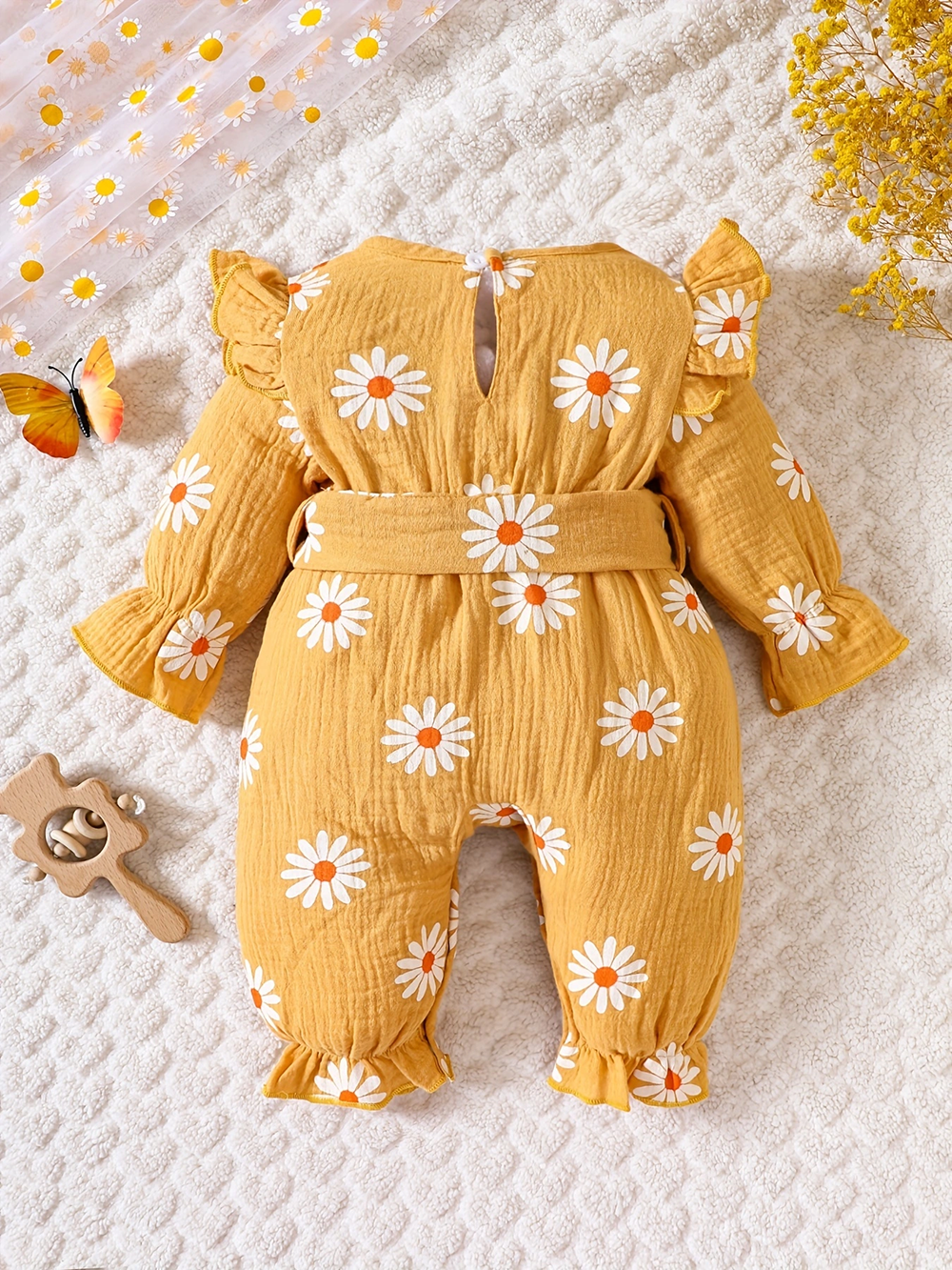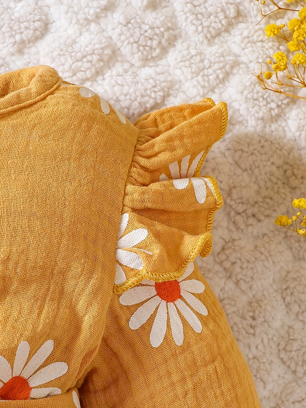 可開(kāi)檔長(zhǎng)袖 連體爬服 花朵印花飛袖 外貿(mào)INS新生嬰幼兒女寶寶春秋款由