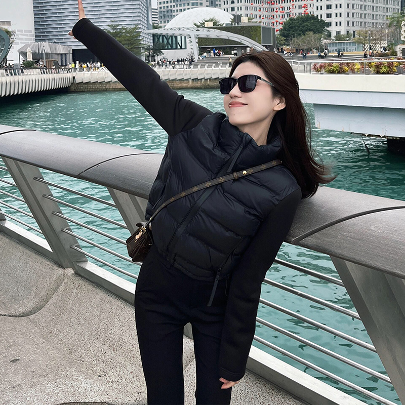 修身 羽絨棉服女2024秋冬季 新款 高級感拼接外套 顯瘦小個子輕薄款由