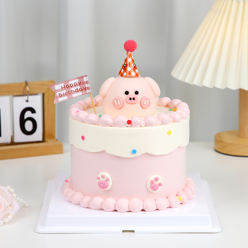 飾擺件黃油小熊奶油小狗小豬頭網(wǎng)紅烘焙生日插件 豬豬巧克力蛋糕裝由