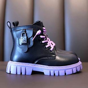 百搭皮靴中大童女孩英倫風高幫單鞋 兒童新款 女童馬丁靴2022春秋款由