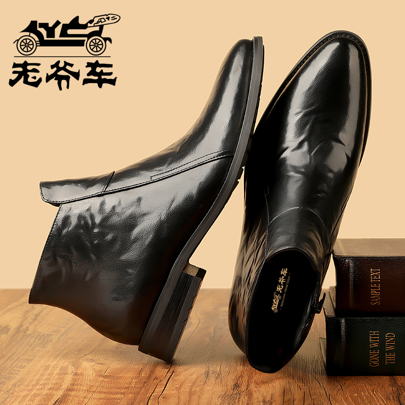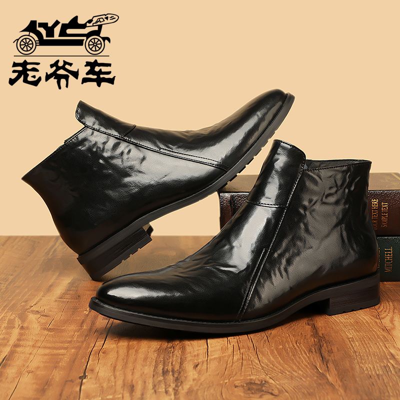 老爺車男鞋 男士 切爾西靴加絨高幫皮鞋 真皮尖頭馬丁靴 2025秋冬新款由
