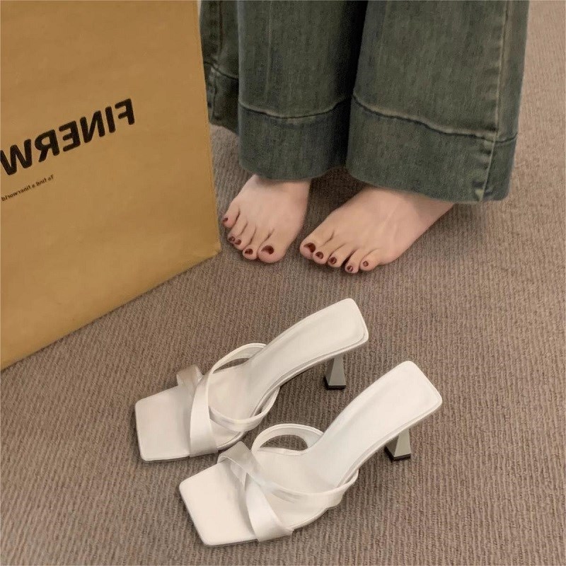 子2024新款 小眾法式 交叉帶涼拖鞋 仙女r鞋 氣質外穿黑色高跟涼 夏季由