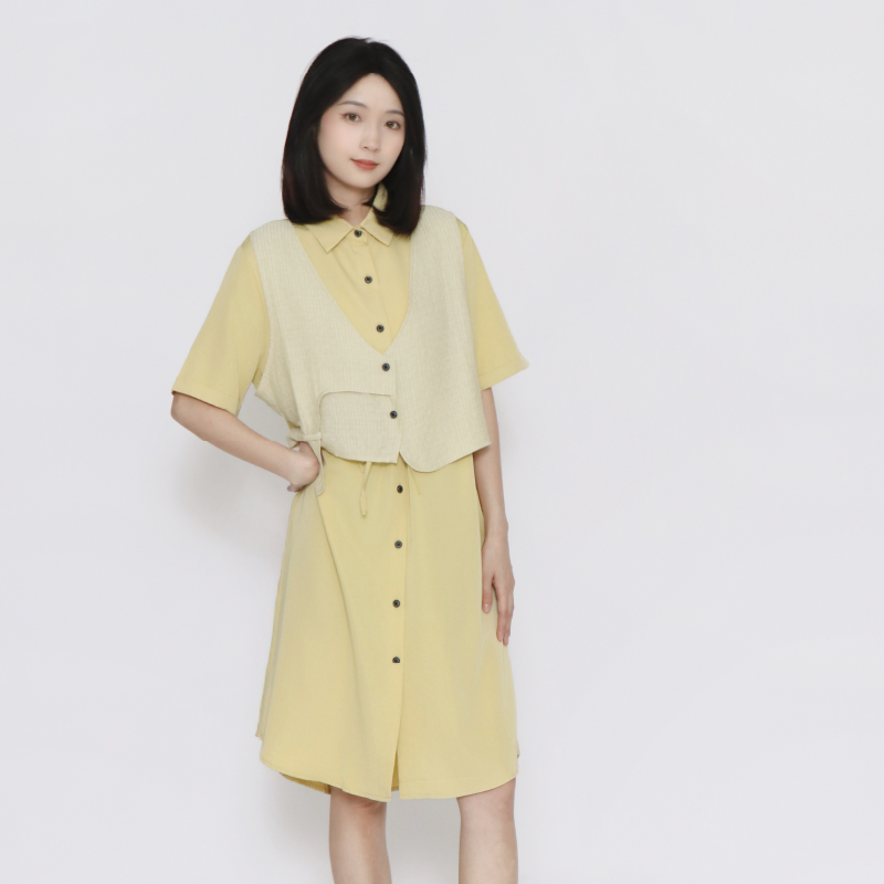 時尚 馬甲假兩件拼接寬松顯瘦休閑裙子 連衣裙女夏季 PATAVINITY短袖由