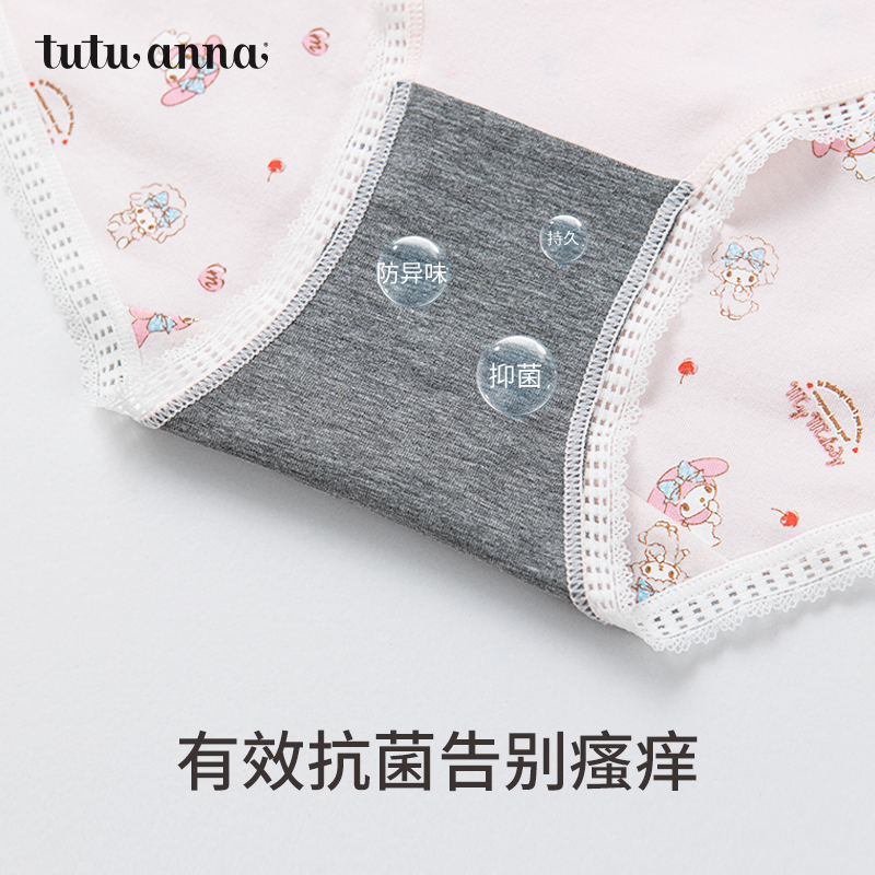 三角褲 女夏 HelloKitty聯(lián)名棉質(zhì)透氣印花5條裝 tutuanna女中腰內(nèi)褲由