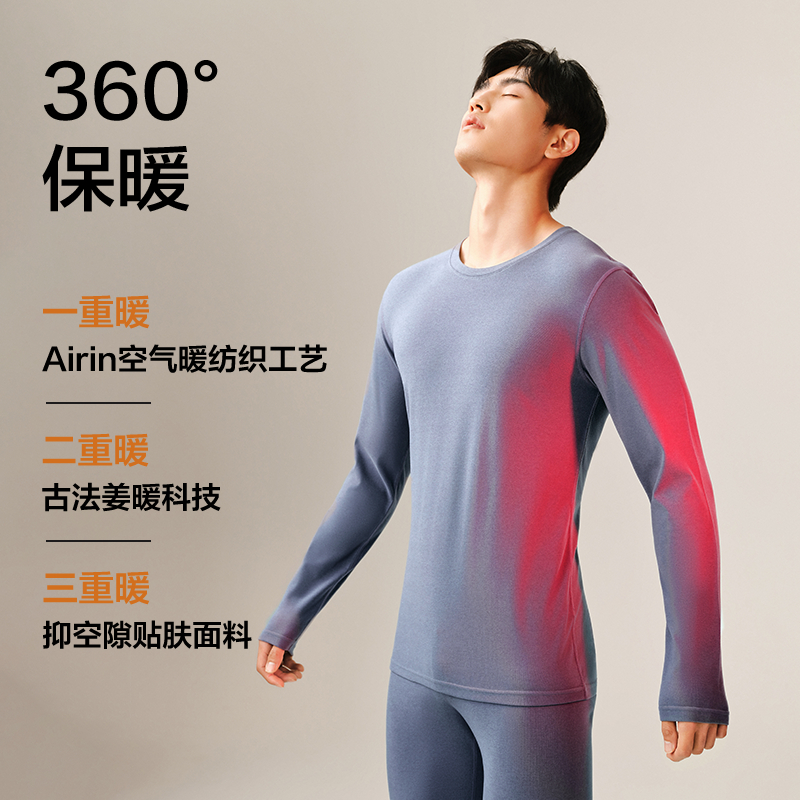 海瀾之家小火AIR8男士 2025新款 秋衣秋褲 磨毛加厚加絨 保暖內衣套裝
