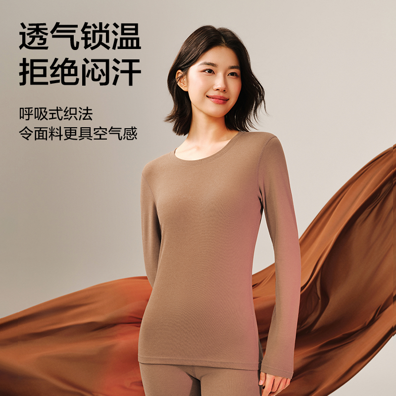 草本初色保暖內衣女2024年新款 防靜電玻尿酸秋衣秋褲 套裝 親膚修身