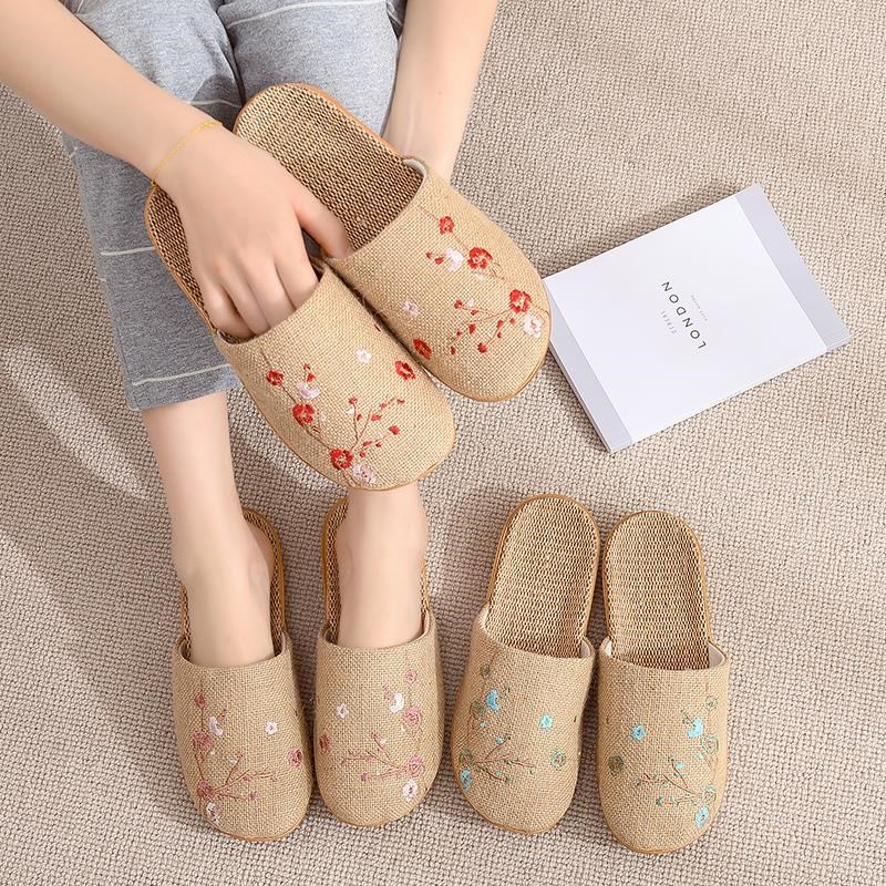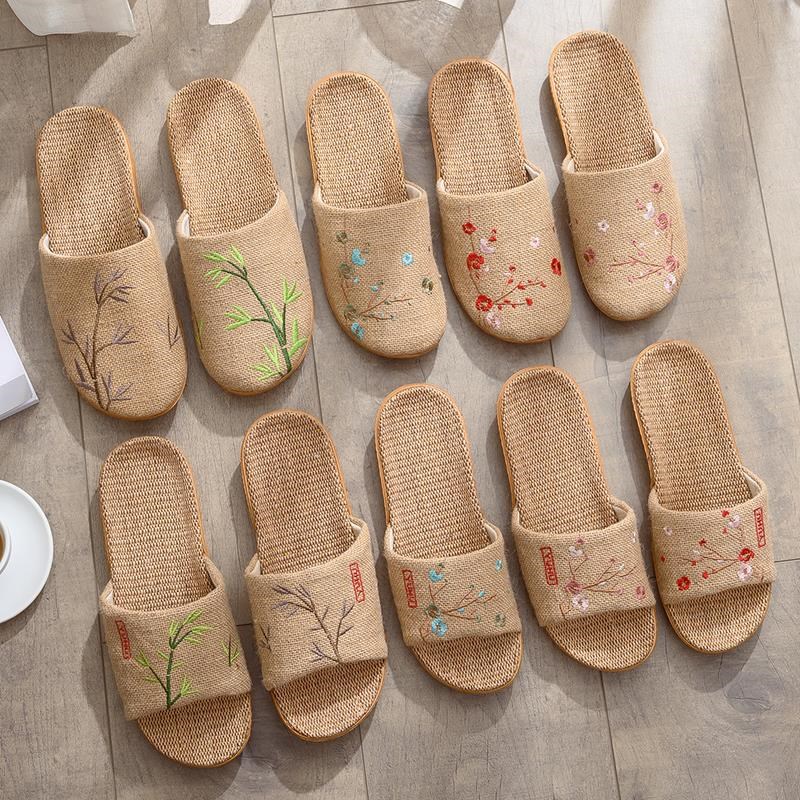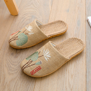 亞麻拖鞋 防滑日系小香風透氣室內靜音居家軟底拖鞋 男四季 春秋女款