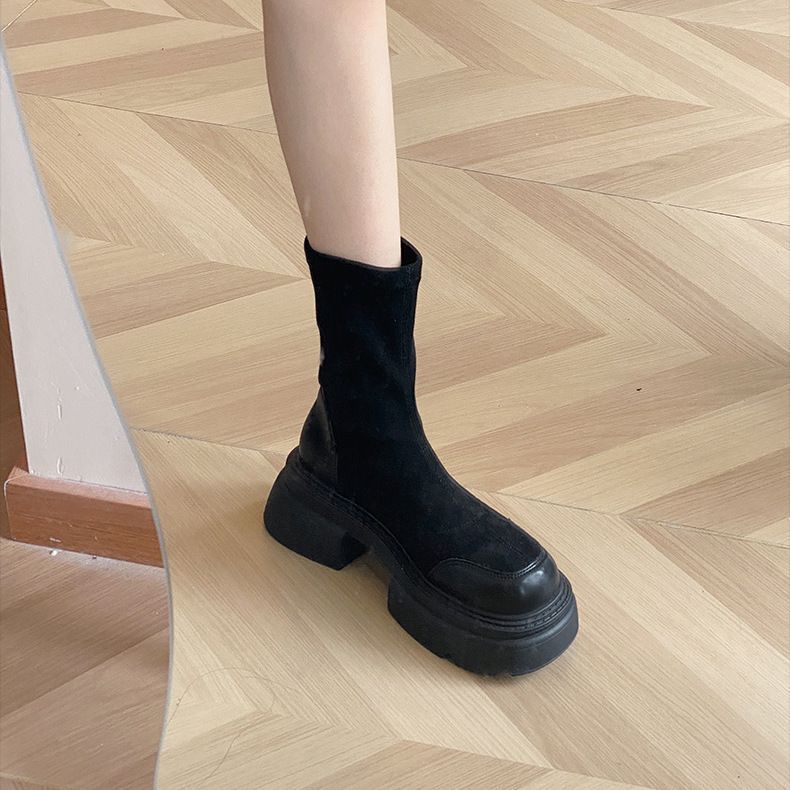 戈美其襪子鞋 高幫靴子中筒襪靴炸街超火短靴英倫彈力靴加絨 秋冬季