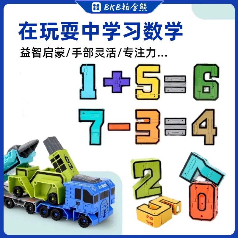 變形數字玩具兒童益智玩具拼裝 6歲9男孩禮物 合體機器人汽車機甲3