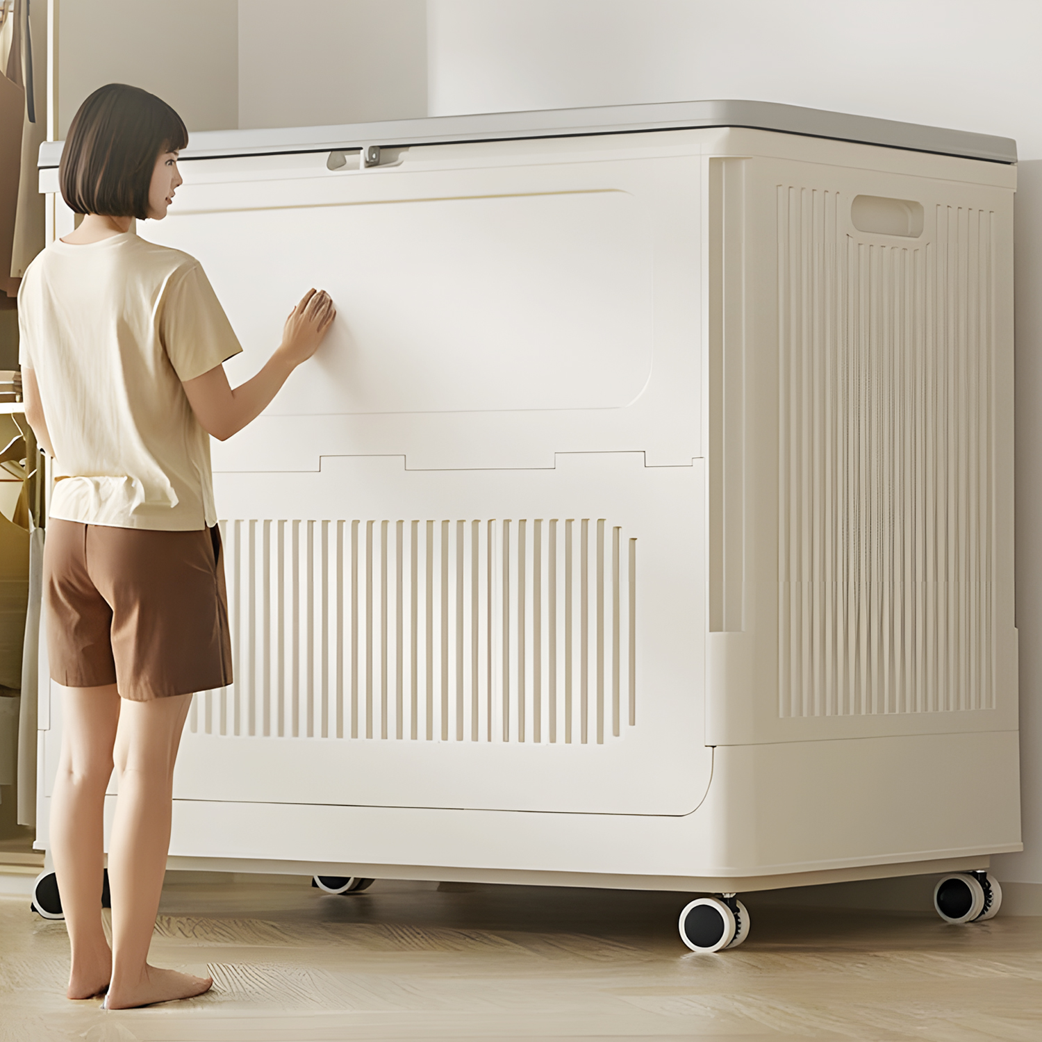 日本衣服收納箱大容量超大家用翻蓋帶滑輪衣物被子整理箱儲物柜筐由