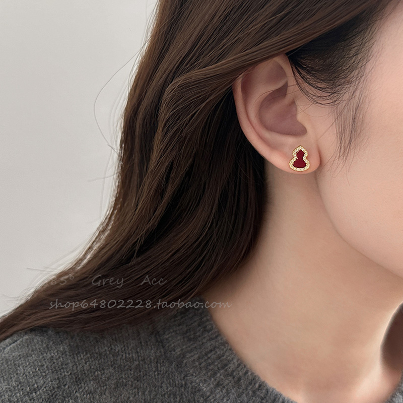 微鑲鋯石滴釉安可拉紅色葫蘆耳釘女精致高級感耳環輕奢氣質耳飾品由