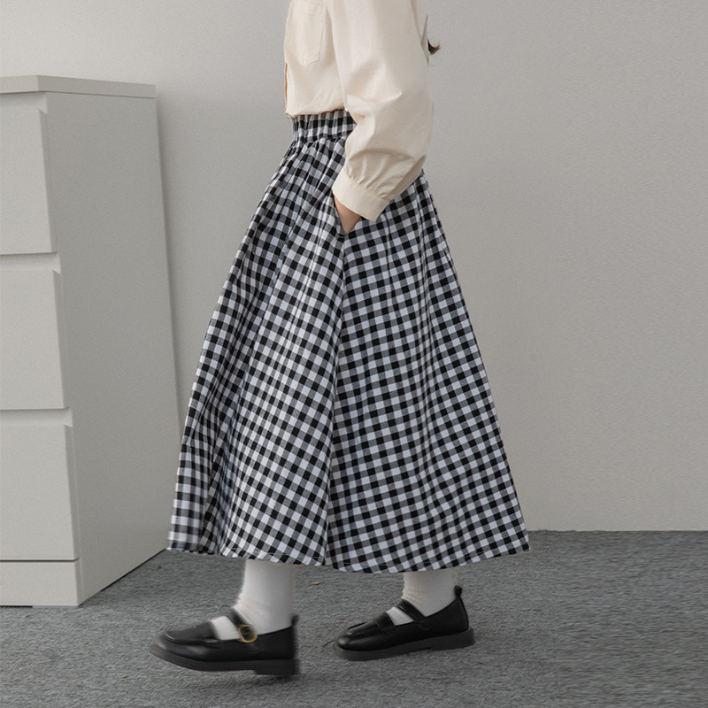 胖mm大擺裙顯瘦梨型女高腰a字半身裙子潮 美拉德復(fù)古格子半裙大碼