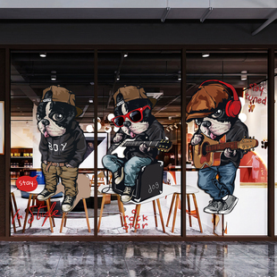 飾卡通狗狗靜電貼門貼浴室廚房家用網紅免膠玻璃貼紙圖案 寵物店裝由