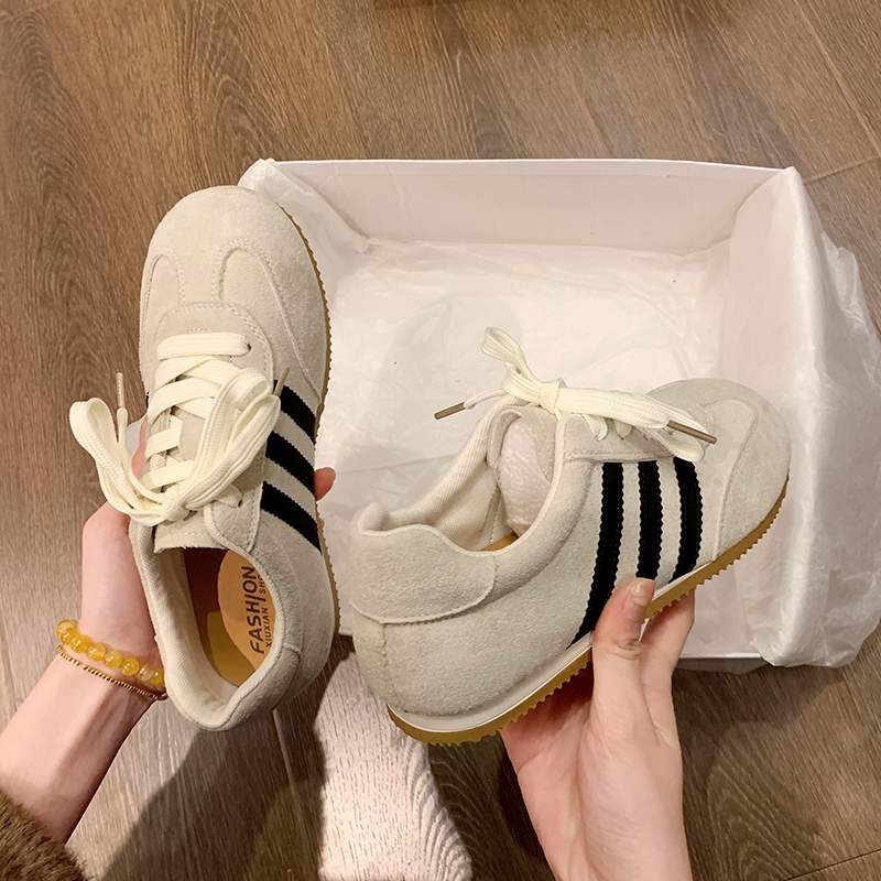 百搭小眾休閑運動板鞋 人本真皮復古德訓鞋 女2025春季 新款 子 阿甘鞋由