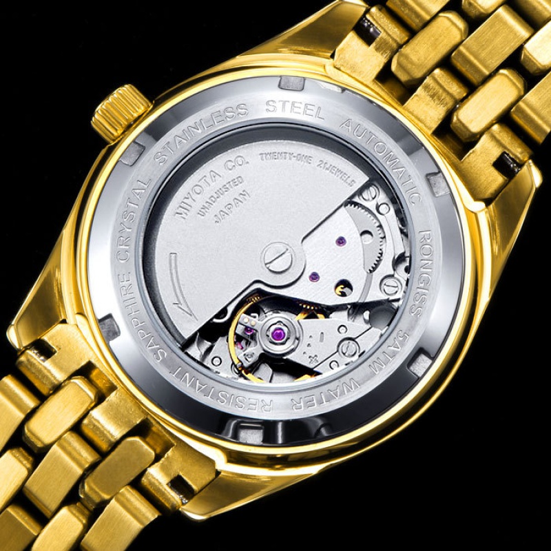 朗積原裝 手表品牌全自動機械表鑲鉆金表 瑞士機械男士由