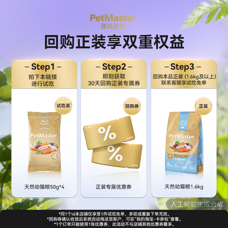 佩瑪思特天然系列無谷配方全價幼貓糧試吃50g U先試樣由