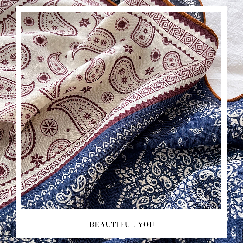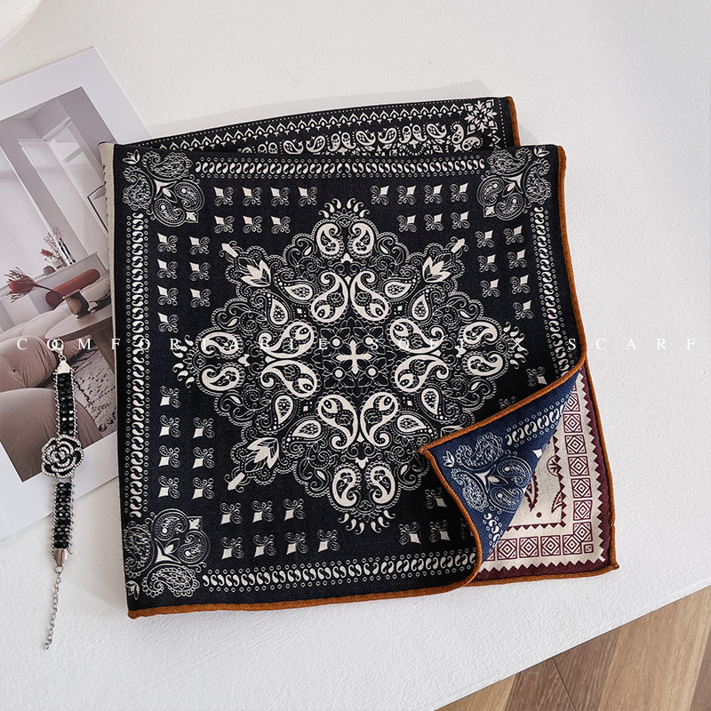 2025秋冬季 羊毛絲巾65cm拼塊腰果中方巾雙面保暖百搭絲毛披肩 時尚由