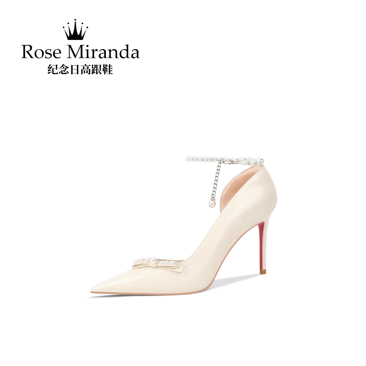 玫瑰米蘭達 RoseMiranda紀(jì)念日高跟鞋 米白色百搭單鞋 女 紅底鞋由
