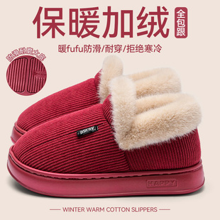 冬季 棉拖鞋 包跟男女加厚室內保暖月子鞋 居家用加絨棉鞋 情侶毛拖鞋