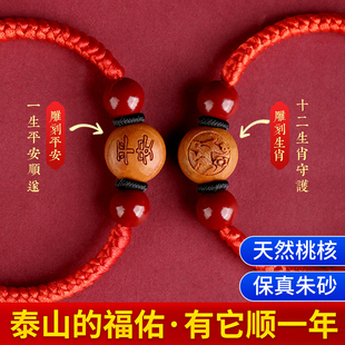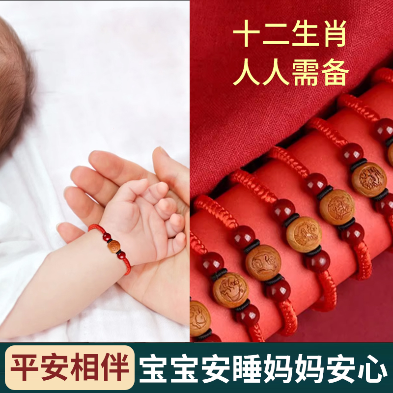 兒童紅繩手鏈桃核雕刻十二生肖守護(hù)編織男女寶寶壓驚平安朱砂手繩由