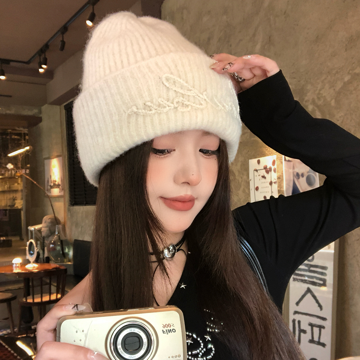 羊毛混紡字母加厚毛線帽子女秋冬2025新大頭圍針織帽保暖護耳冷帽由