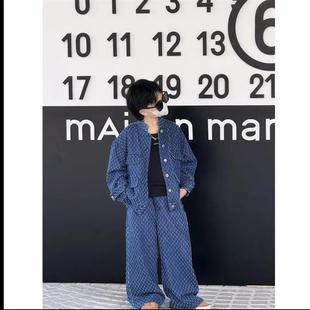 新e款 詩意服飾小筑男童秋e裝 套裝 秋季 肌理牛仔休閑兩件套 兒童韓版由