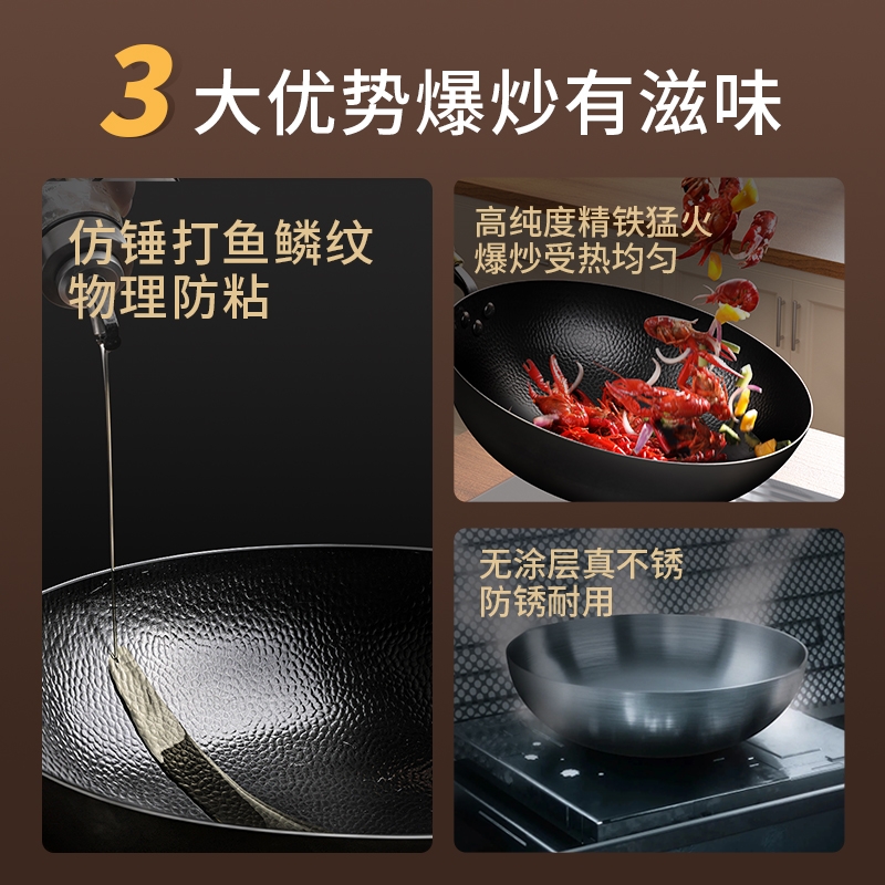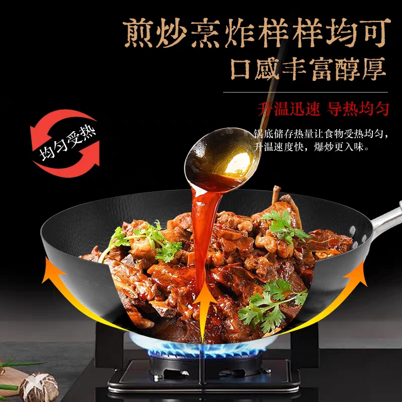 三四鋼?精鐵炒鍋家用無涂層熟鐵圓底炒菜鍋免開鍋 新國標鐵鍋