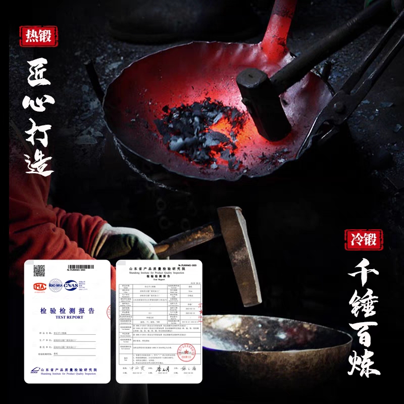 氮化鐵鍋家用炒菜鍋無涂層不粘鍋 章丘傳統錘紋鐵鍋官方旗艦店老式由