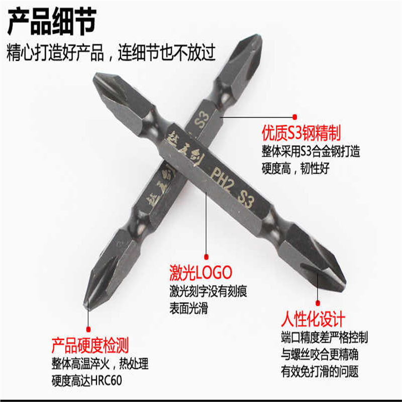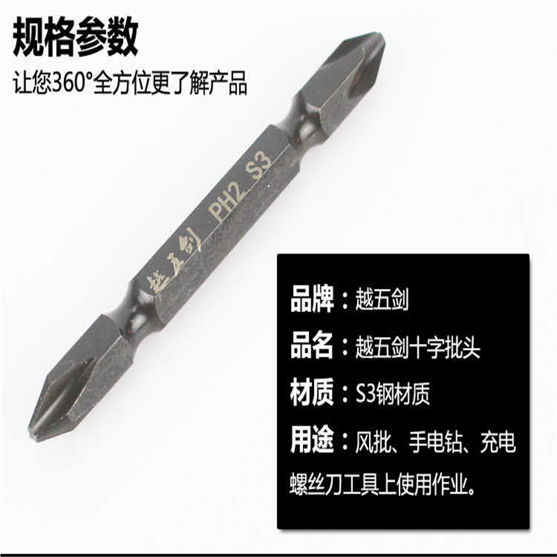 越五劍雙頭十字螺絲起子頭S3電動螺絲起子批頭強(qiáng)磁性氣動起子加長由