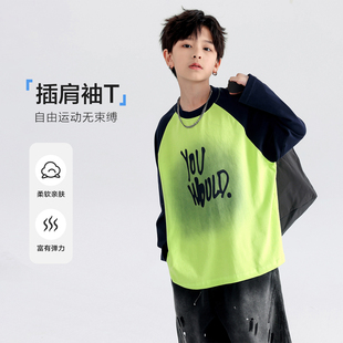 兒童男孩秋季 痞帥寬松薄上衣 t恤2025新款 男大童春秋漸變撞色長袖由