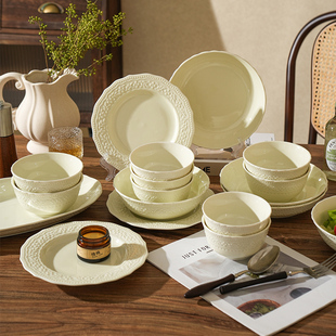 舍里法式 餐具小碗家用餐盤菜盤子陶瓷吃飯碗 浮雕米飯碗特別好看
