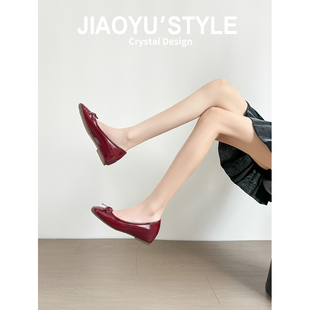 復古蝴蝶結氣質女鞋 2025春季 子 女法式 淺口尖頭平底單鞋 新款 黑色鞋