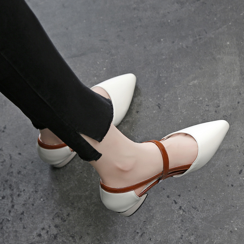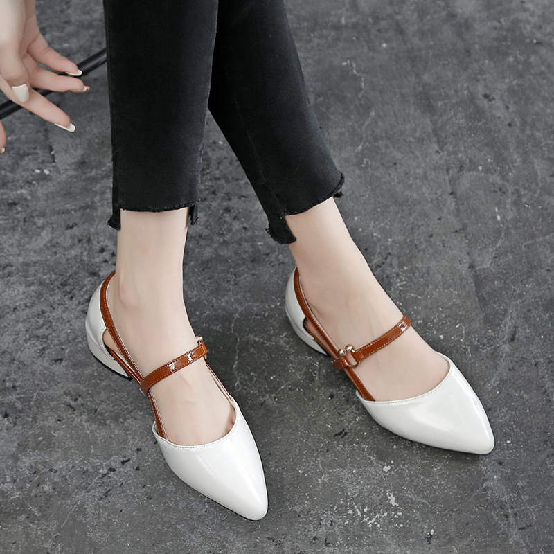 包頭涼鞋 尖頭一字帶大碼 女鞋 真皮高級 女夏中跟粗跟漆2025年新夏季由