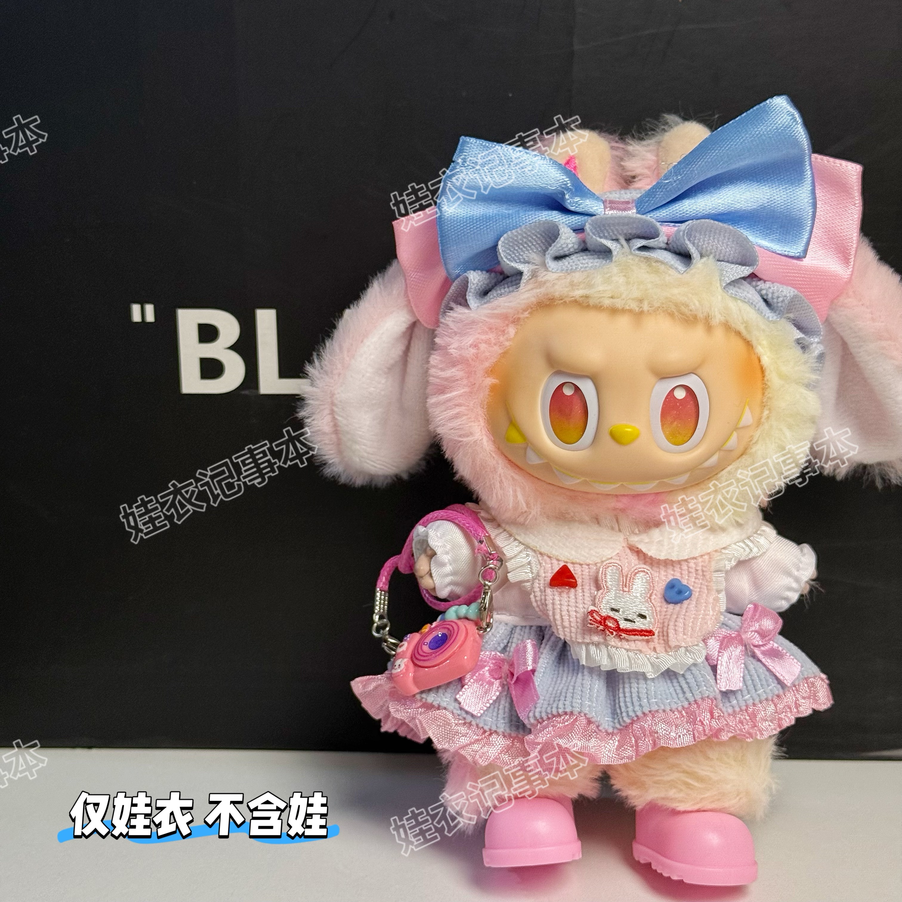 僅售娃衣 綠色拉布布娃衣卡通多巴胺labubu衣服可愛超萌潮玩服裝