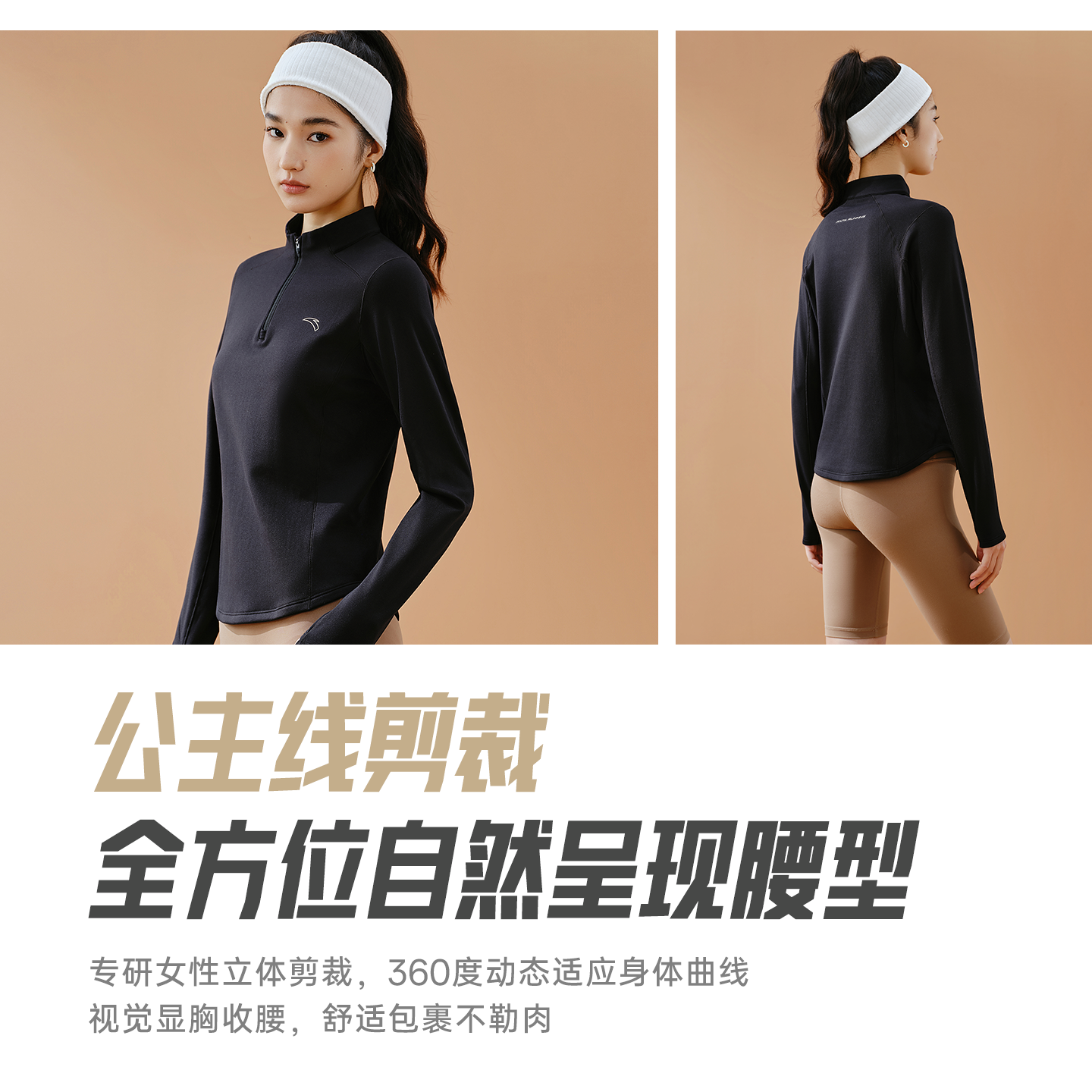 t恤女秋冬新款 安踏超模T 半拉鏈修身 長袖 運動上衣 保暖內搭打底衫由