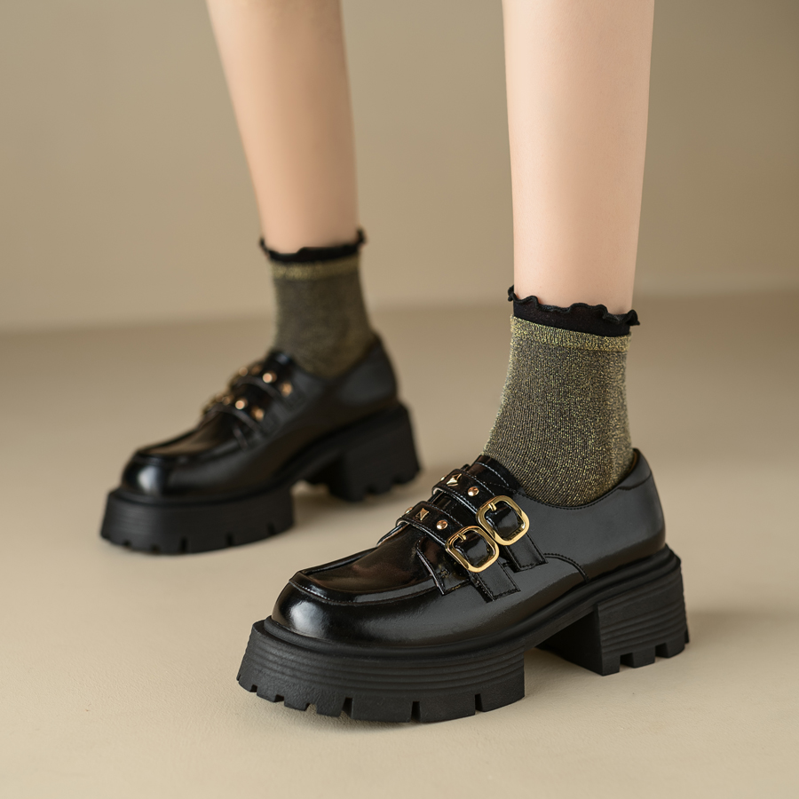 潮流舒適輕熟小皮鞋 2025年春新款 日常通勤百搭街頭復古厚底樂福鞋由