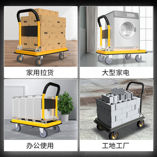 小推車(chē)?yán)浖矣檬滞栖?chē)折疊便攜平板車(chē)搬運(yùn)車(chē)倉(cāng)庫(kù)四輪拖車(chē)靜音拉車(chē)由