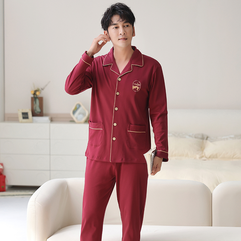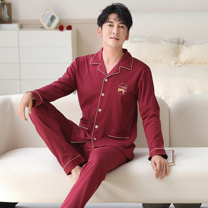 紅色本命年家居服新婚套裝 2025年新款 大碼 純棉長袖 春秋季 睡衣男士由