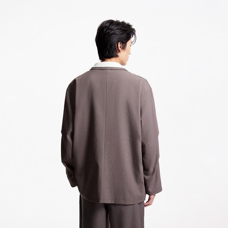 蕓蟻〔棕月泥〕羊毛混紡多形態人紋肌理不對稱可立平駁領外套西裝