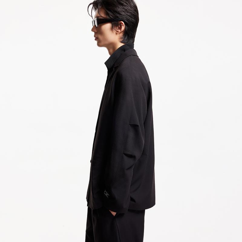 OCTOBEE 秋夾克外套男 LAB多口袋戶外通勤純色壓膠平駁領西服西裝