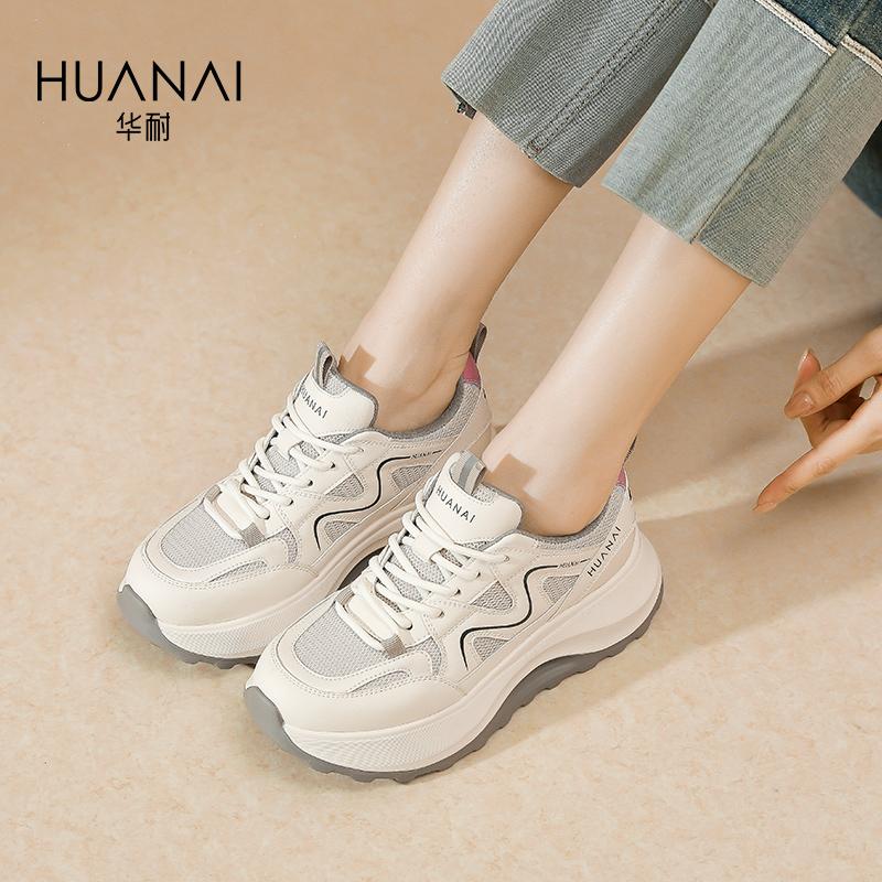 透氣小個子輕便運動百搭松糕休閑鞋 2025春秋款 華耐女士老爹厚底鞋由