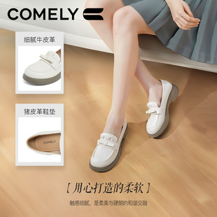 豆豆媽媽小皮鞋 達(dá)芙妮樂福鞋 軟皮夏季 平底女鞋 女2025新款 真皮單鞋