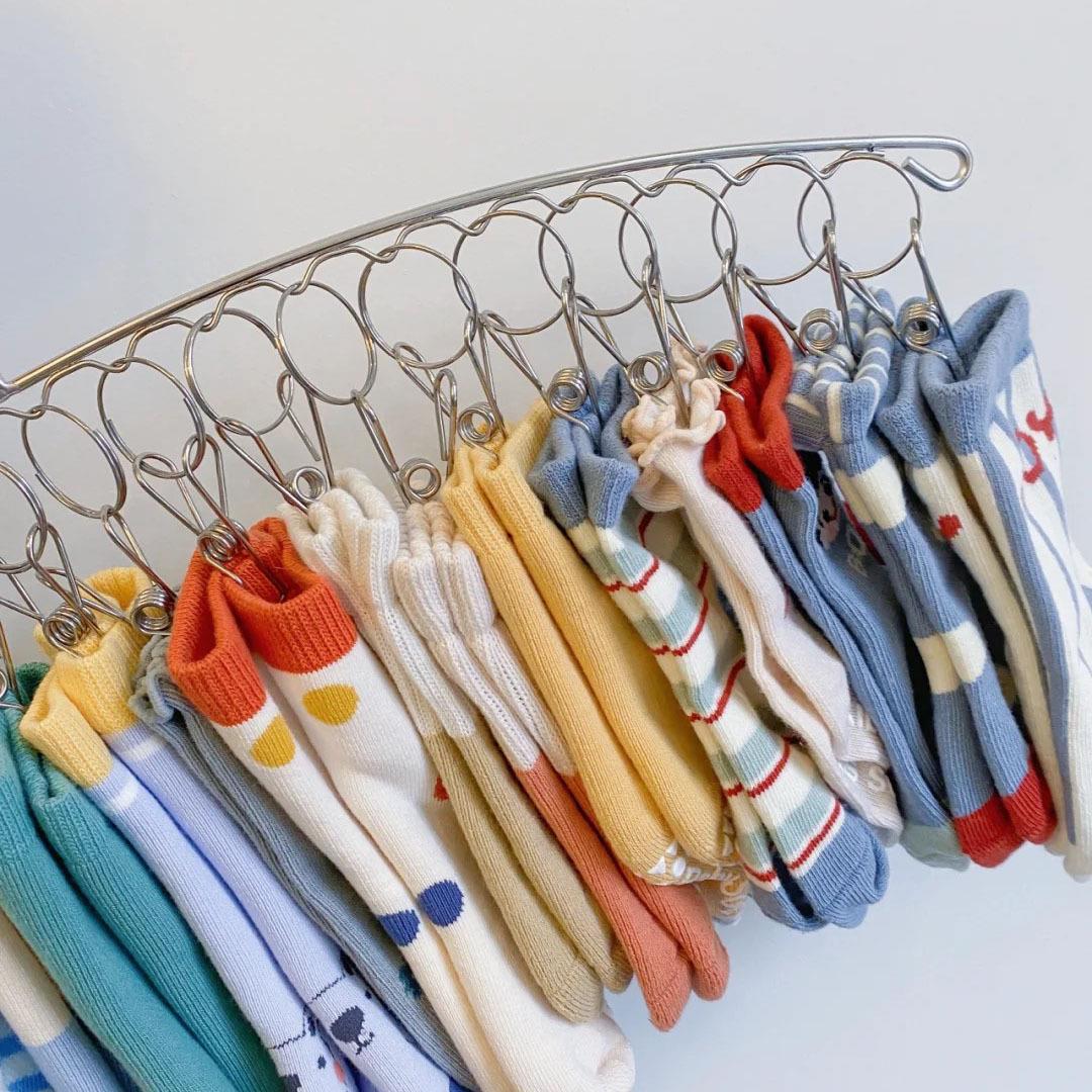 襪子晾曬架不銹鋼晾衣架陽臺家用帶多夾子衣架多功能曬內衣夾神器