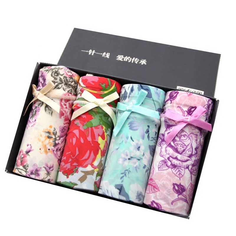 女士10A抑菌加長純棉檔中腰包臀不卡檔蕾絲平角褲 內褲 國風禮盒裝