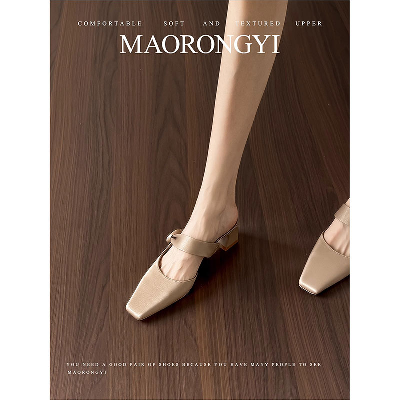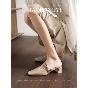 女夏外穿粗跟半拖單鞋 毛容易夏季 無后跟方頭穆勒鞋 包頭涼拖鞋 夏季由