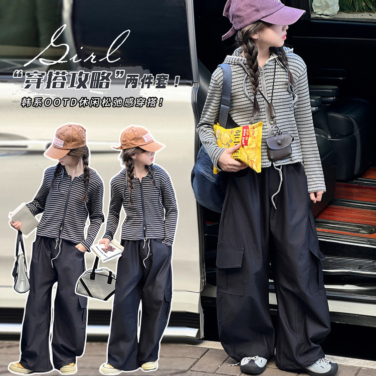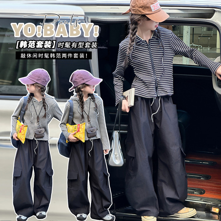 安琪拉88&25111條紋衛衣工裝 套裝 童裝 褲由