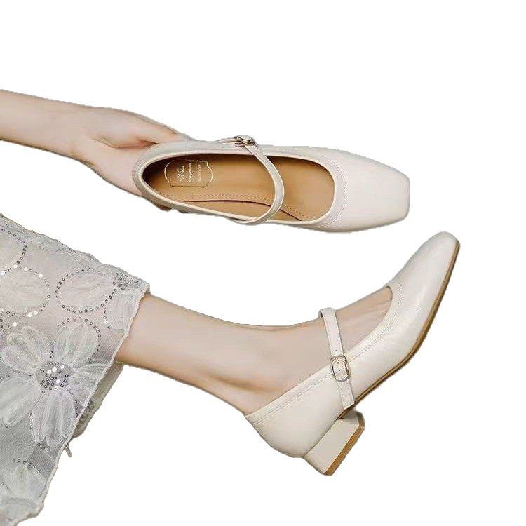 真皮粗跟單鞋 早春法式 瑪麗珍鞋 紅色仙女風配裙子晚晚 女2025新款由