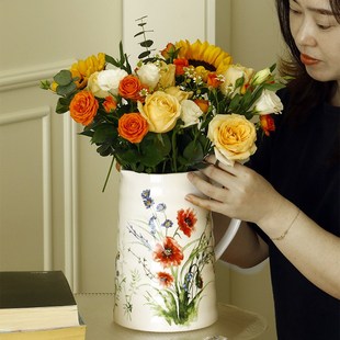 田園風(fēng)陶瓷花瓶大號(hào)創(chuàng)意小清新家居擺件客廳餐桌插花水培器皿 OMK由